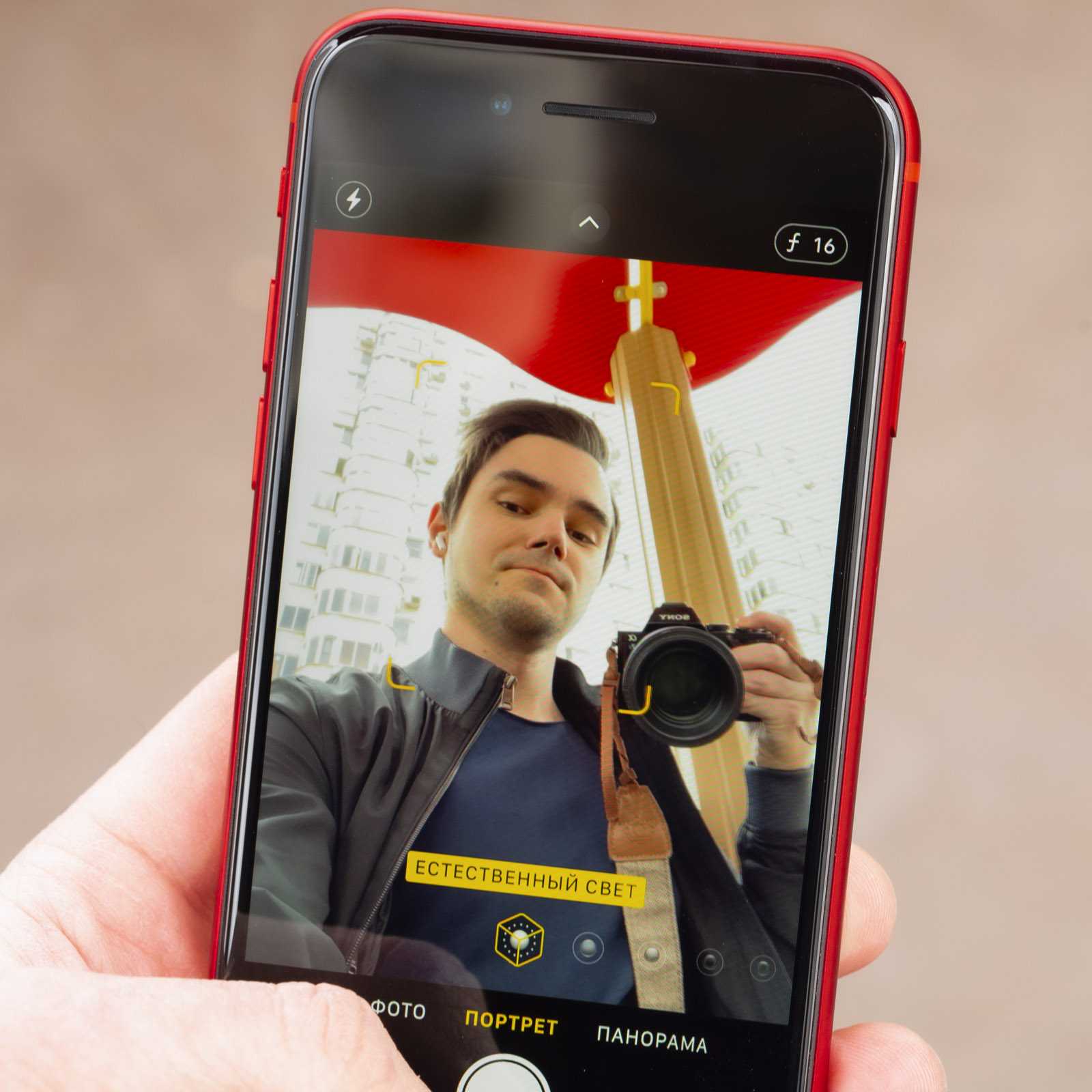 Другая важная особенность тыловой камеры — поддержка портретной съемки с возможностью регулировки эффекта боке при помощи функции «Глубина». В этом режиме на основную камеру нового iPhone SE можно делать зачетные портретные фото, выбирая различное портретное освещение, например, студийный или контурный свет.