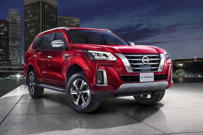 Не менее элегантный и презентабельный внедорожник Nissan X-Terra 2021 в боковом ракурсе. В поле зрения: