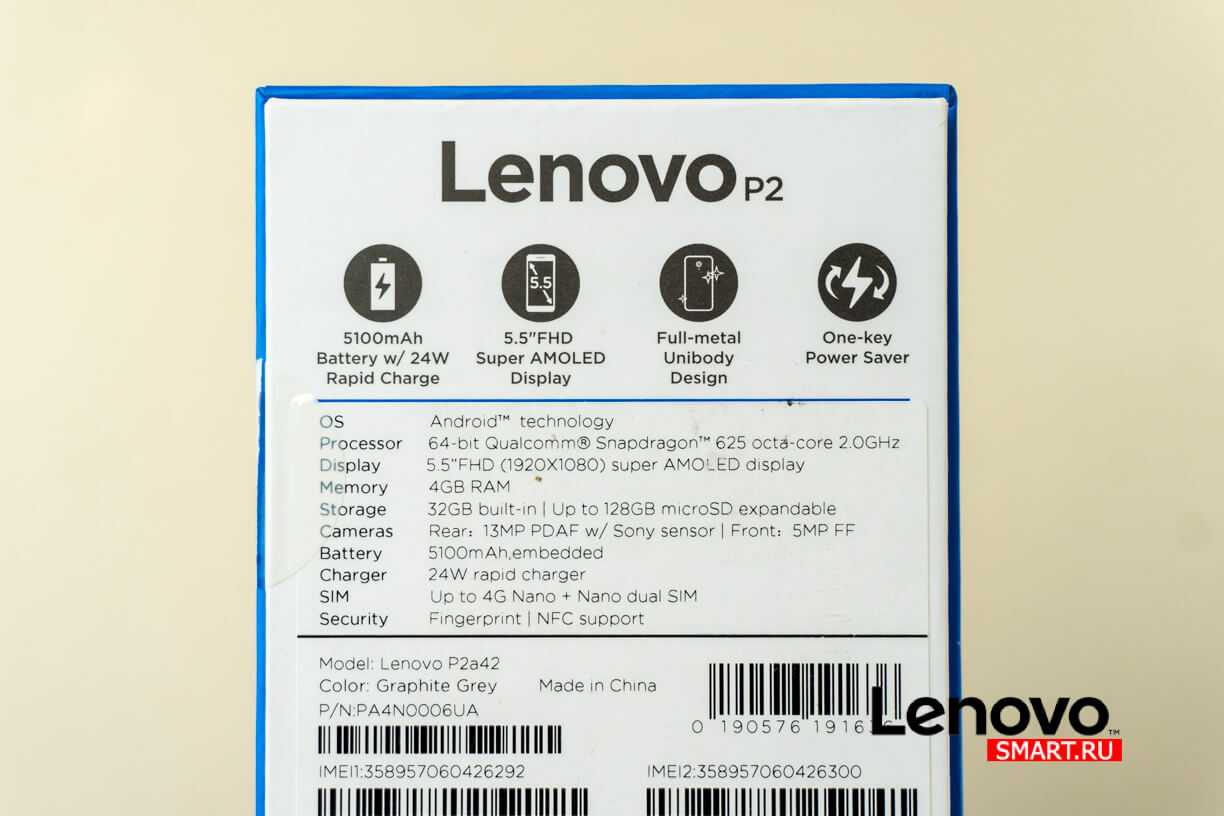 Lenovo P2 получился стильным устройством с хорошей аккумуляторной батареей и качественным дисплеем. Отдельно стоит отметить сканер отпечатков пальцев, который работает очень быстро и не уступает современным флагманам. Сенсор Sony IMX258 от Sony позволит снимать отличные фото и 4K видео, а специальные режимы удовлетворят как новичка, так и фотолюбителя.