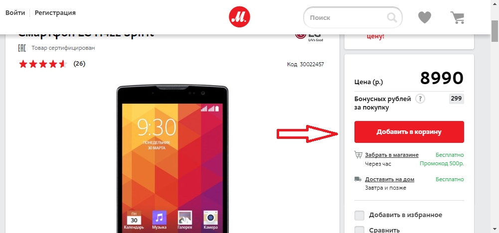 На странице товара можно ознакомиться с подробными характеристиками смартфона, узнать его цену, выбрать цвет и дополнительные аксессуары к нему. Для подтверждения покупки необходимо нажать кнопку «Добавить в корзину», после чего откроется список выбранных товаров и общая их стоимость. Для заказа необходимо нажать кнопку «Оформить заявку». В появившемся окне выберите способ доставки (самовывоз или курьер), укажите свои ФИО, контактный телефон и адрес доставки. Там же необходимо выбрать способ оплаты. Оплатить можно наличными курьеру или при помощи банковских карт Visa, MasterCard и Maestro, а так же с помощью электронных кошельков Webmoney, Qiwi и Яндекс Деньги.