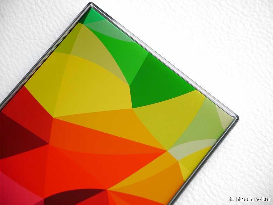 Первым пунктом обзора заслуженно идет рассказ о дизайне. Смартфон Sharp Aquos Crystal с минимальными рамками отличается от всего, что есть на рынке, и на полке салона связи сразу обращает на себя снимание. А первое впечатление порой бывает самым сильным. Главное, не забыть включить экран, чтобы оценить всю прелесть идеи. Зачастую производители делают упор на размерах рамок вокруг дисплея, подчеркивая компактные формы своих новинок. Если у флагмана LG G3 5,5-дюймовый экран занимает 75,7% поверхности и это прекрасный результат, то у Sharp показатель ещё выше, оно составляет 78,26%.