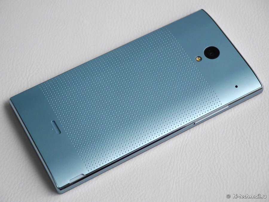 Но оформление задней поверхности в Sharp Aquos Crystal вышло куда менее изысканным. Смартфон получил простую пластиковую панель изогнутой формы с точечным рисунком, напоминающим Samsung Galaxy S5. Не самая лучшая ассоциация на наш взгляд.