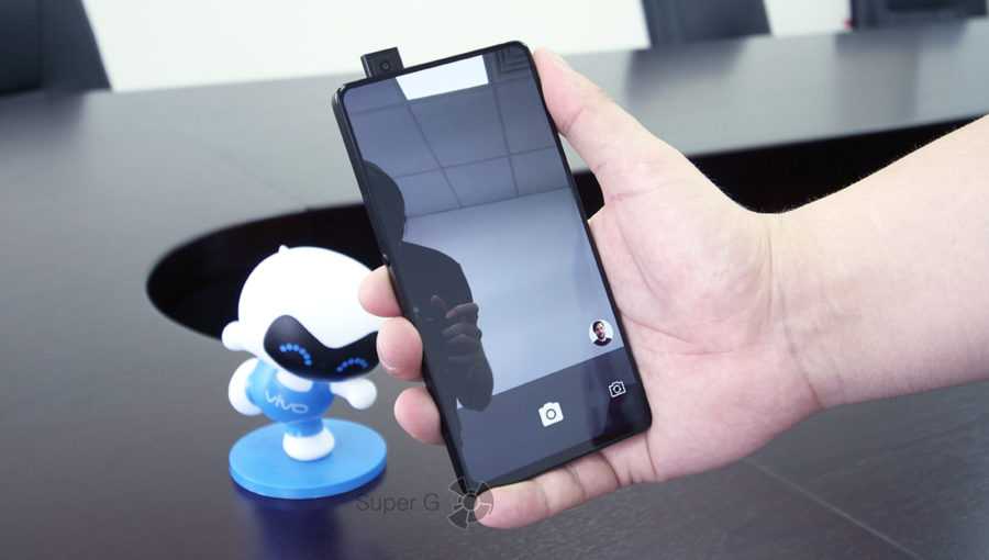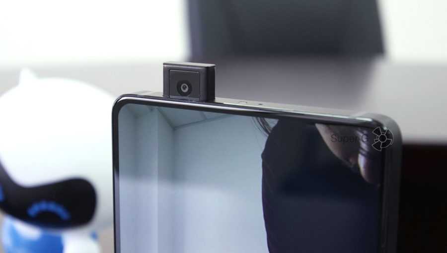 Заслуживает отдельного внимания, ибо её нет. Вернее, она есть, но спряталась не на подбородке, сбоку или сзади. Фронталка тут находится прямо внутри корпуса и выезжает из него, когда запускаешь приложение камеры. Фишка именуется Elevating Front Camera.